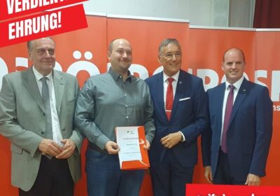 Gestern fand die Gemeindevertreterverbandssitzung der SPÖ in Prottes statt. Neben der Wahl des neuen Vorstandes wurden ausgeschiedene Gemeinderät*innen für besonderes und langjähriges Engagement geehrt. Auch unserem Michael Hlavaty wurde das silberne Ehrenzeichen verliehen. Mit dabei waren auch unsere Stadträtin Ulli Cap und GR Thomas Stiller, Christine Löwenpapst und Murat Aslan.