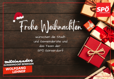 Wir wünschen allen Gänserndorfer:innen frohe Weihnachten und eine besinnliche Zeit mit ihren Liebsten!
